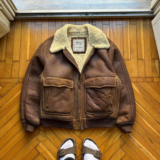 1980s Emporio Armani Leather Shearling Jacket Brown L