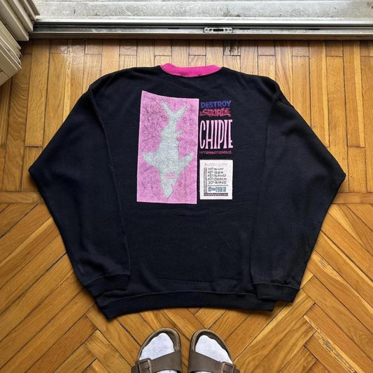 1990s Chipie Graphic Knitted Jumper Black L