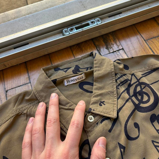 1990s Boneville Music Note Print Shirt L